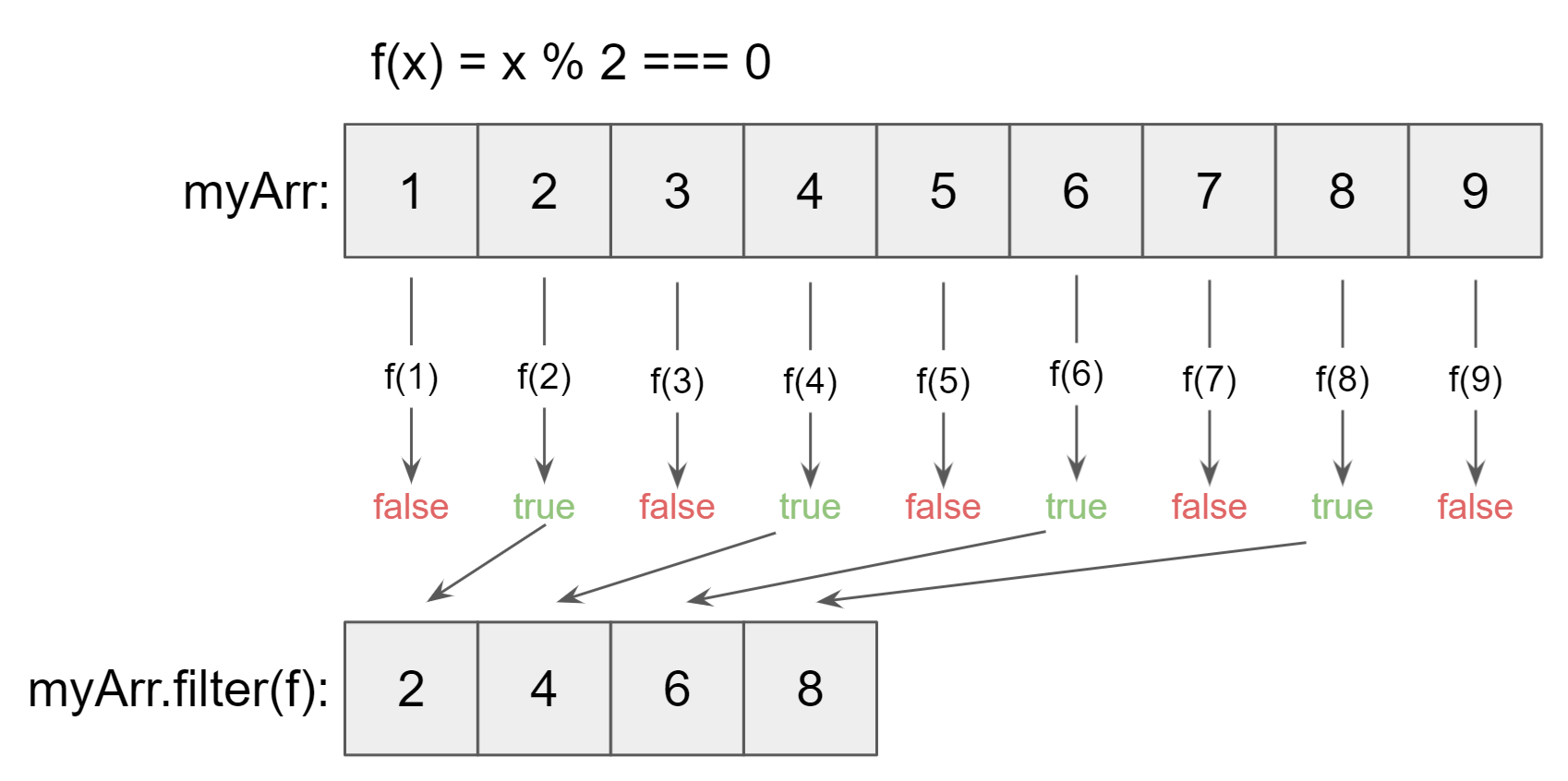 const evenNumbers = myArr.filter(x => x % 2 === 0);console.log(evenNumbers); // [2, 4, 6, 8]